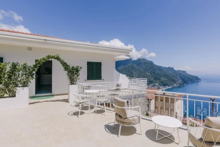 Located just steps from the historic center of Ravello and directly beneath the renowned Villa Rufolo, the property boasts breathtaking sea views that capture the essence of the Amalfi Coast.